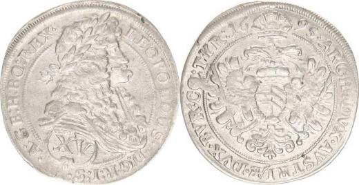 Leopold I. (1657-1705), XV kr. 1695 b.zn. Vídeň Hol.95.1.1a var.: za S pouze jedna