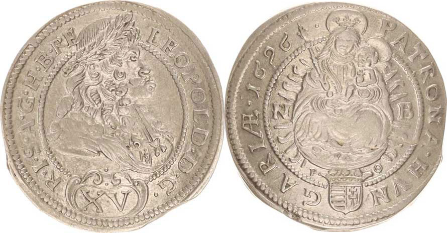 XV kr. 1696 NB-PO, Nagybánya Hol.96.2,3 "R" var. za Leop old je tečka, ražba na válc. stroji
