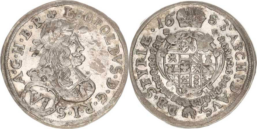 Leopold I. (1657-1705), VI kr. 1683 I A N, Štýrsko,Graz-Nowak - typ oboustr. bez vnitřníc