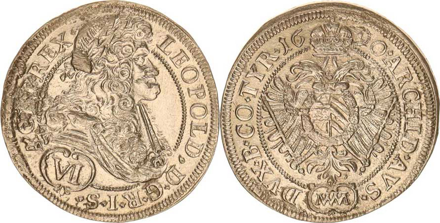 Leopold I. (1657-1705), VI kr. 1690 MM, Vídeň-Mittermayer var.: tečka za REX.
