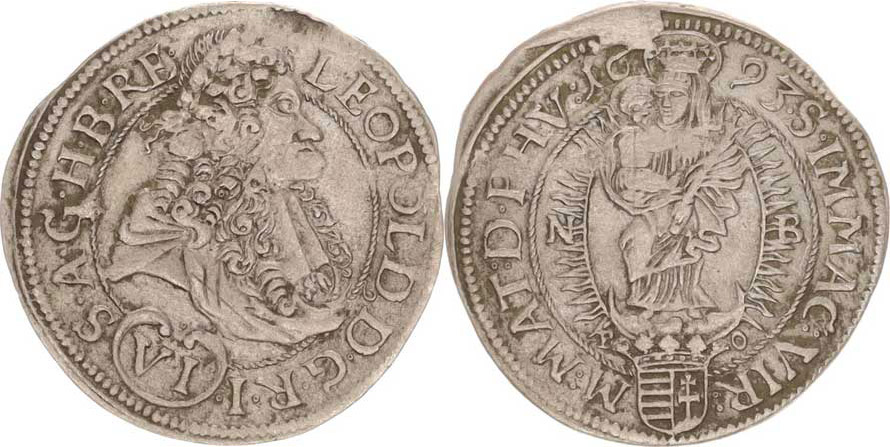 VI kr. 1693 NB - PO, Nagybánya typ S. IMMACVLATA Husz. -, jak o 1457, opis: LEOPOD, D.G.R.I. - S.A.G.H.B.RE. / S. IMMAC: VIR: - M: MAT: D. P. HV: .16-93. "RR", dr. nálitek