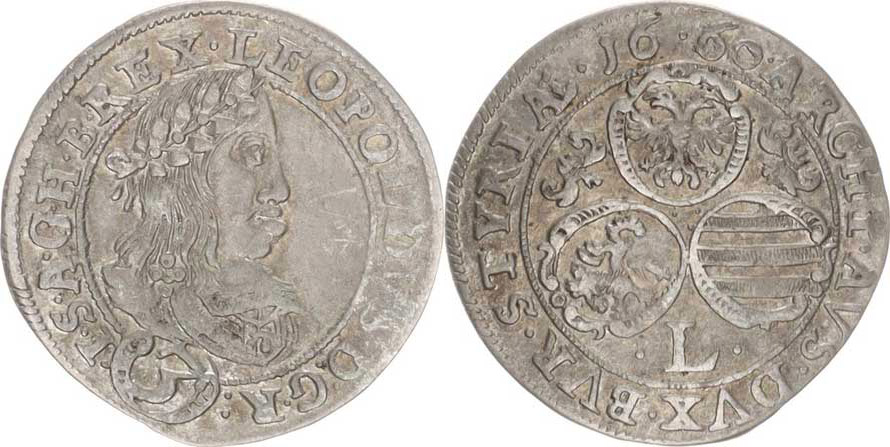 Leopold I. (1657-1705), 3 kr. 1660 L, Štýrsko-Graz "R", mělčí ražba opisu