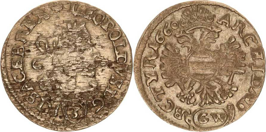 Leopold I. (1657-1705), 3 kr. 1660 GW, Kladsko-Werner "RR" MKČ 1646 chyboražba (míst