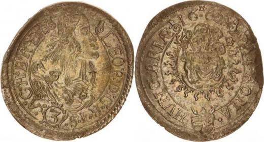 Leopold I. (1657-1705), 3 kr. 1662 KB Husz. 1464, Hal.388 var.: datace rozdělena t