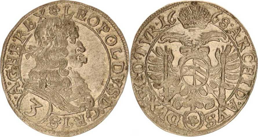 Leopold I. (1657-1705), 3 kr. 1668, Vídeň-Faber