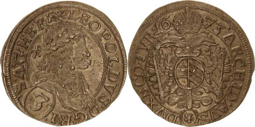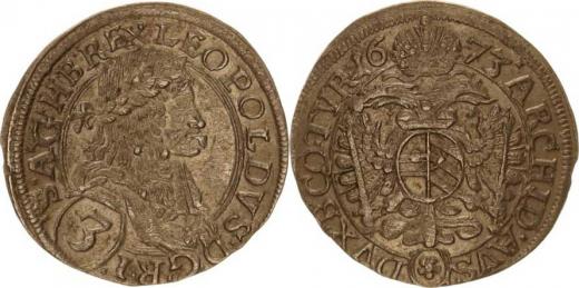 Leopold I. (1657-1705), 3 kr. 1673, Vídeň-Faber