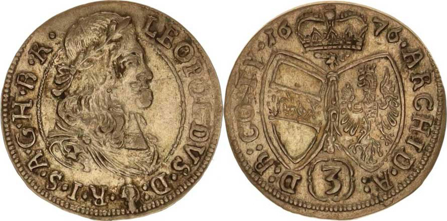 Leopold I. (1657-1705), 3 kr. 1676, Tyroly-Hall, tém.