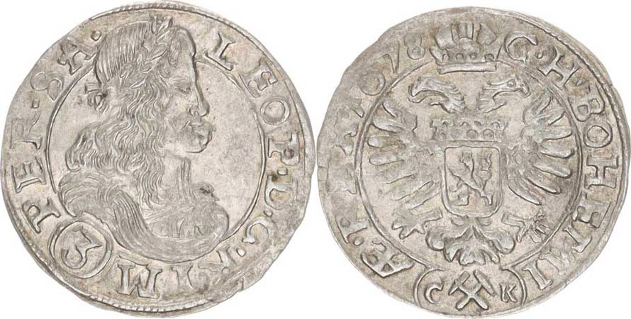 Leopold I. (1657-1705), 3 kr. 1678 CK, K.Hora-Krahe "R"