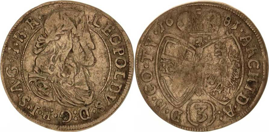 Leopold I. (1657-1705), 3 kr. 1681, Tyroly Hall, tém.