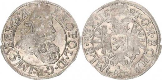 3 kr. 1687 C I K, K.Hora-Krahe var.: bez květinky za S. A "R "