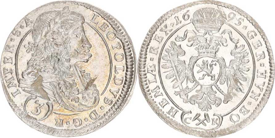 Leopold I. (1657-1705), 3 kr. 1695 CK, K.Hora-Krahe MKČ 1458 var.: bez tečky za R a S
