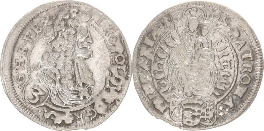 Leopold I. (1657-1705), 3 kr. 1697 CH/CSH, Bratislava-Hunger jako Husz. 1478, jiné zd