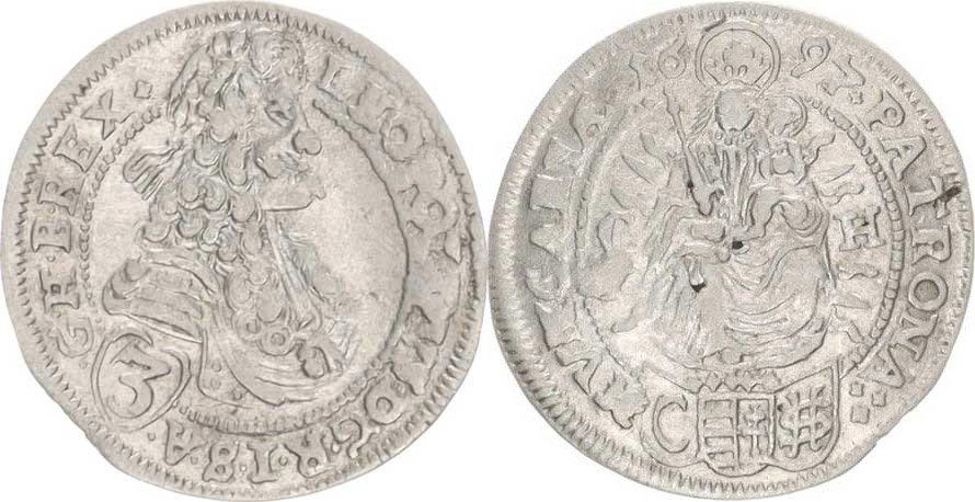 Leopold I. (1657-1705), 3 kr. 1697 CH/CSH, Bratislava-Hunger jako Husz. 1478, jiné zdo