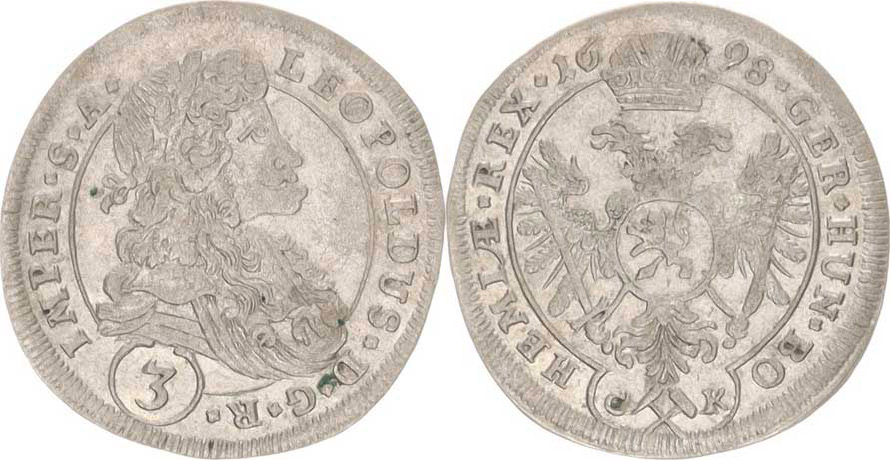 Leopold I. (1657-1705), 3 kr. 1698 CK, K.Hora-Krahe "R"
