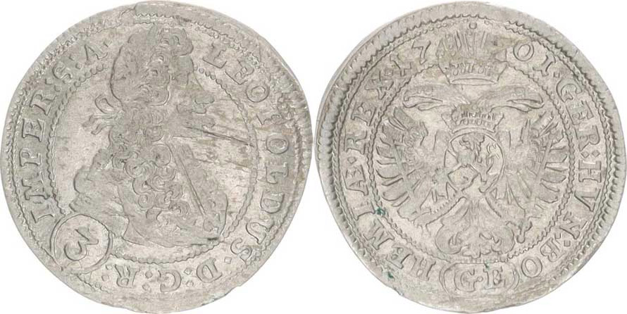 3 kr. 1701 GE, Praha-Egerer MKČ 1429, dr. vada stř. v av.