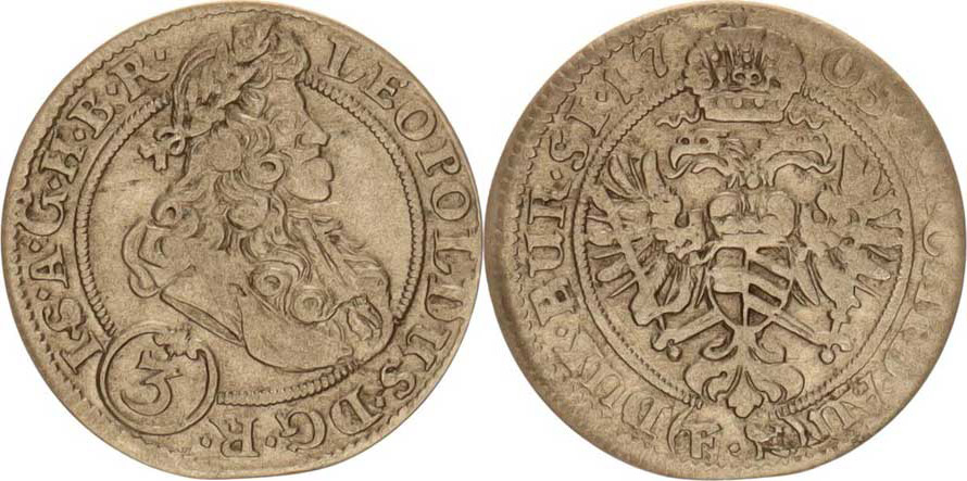 Leopold I. (1657-1705), 3 kr. 1705 FN, Vratislav-Nowak MKČ -, v opisu místo V "U"