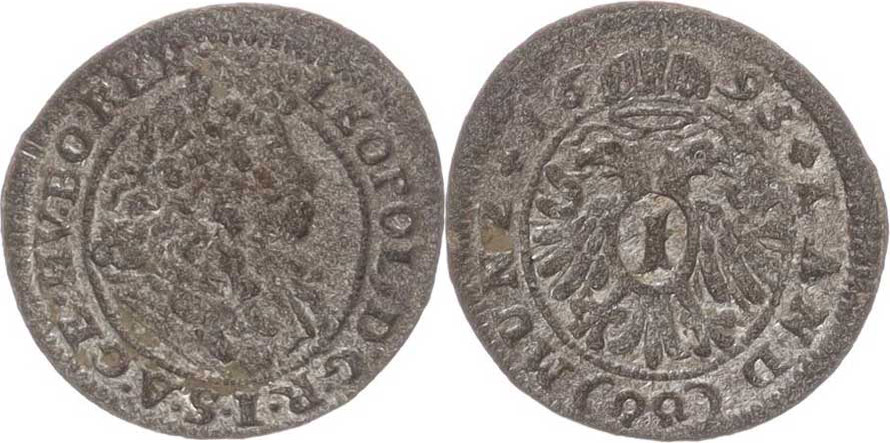 Leopold I. (1657-1705), 1 kr. 1695, Augsburg-Hohleisen, LAND MUNZ "R"