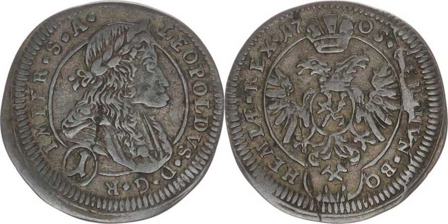 Leopold I. (1657-1705), 1 kr. 1705, K.Hora-Wohnsiedler jako MKČ 1472, ale IMPER.S.A.