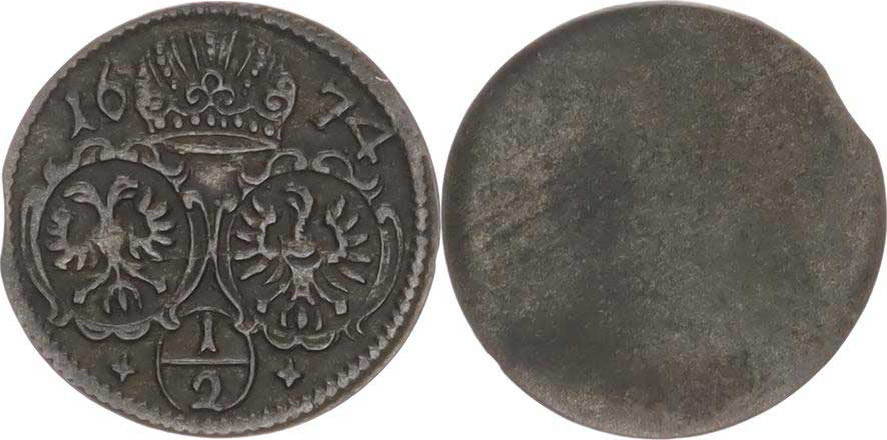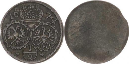 1/2 kr. 1674, Opolí-Kirschenhofer MKČ 1677 "R", patina
