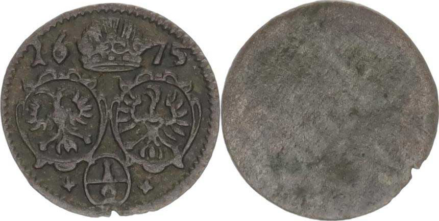 1/2 kr. 1675, Opolí-Kirschenhofer jako MKČ 1678 "R" datace v rovině, jiné ornamenty vedle hodnoty, patina