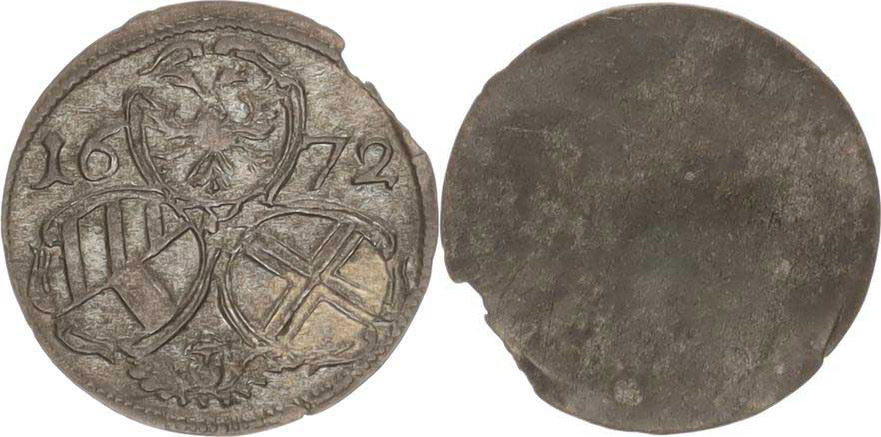 2 Pfennig 1672, Vídeň "R" patina, hr. ražbou