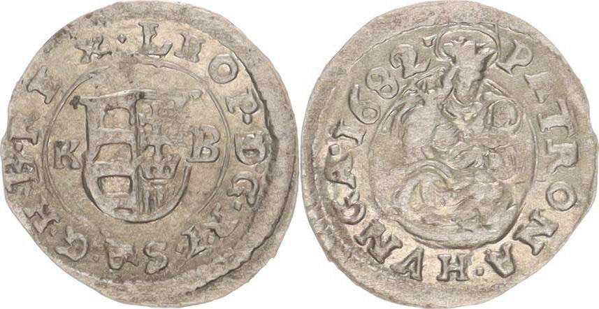Leopold I. (1657-1705), Denár 1682 K-B Hal. 402 var.: před a za datací tečka