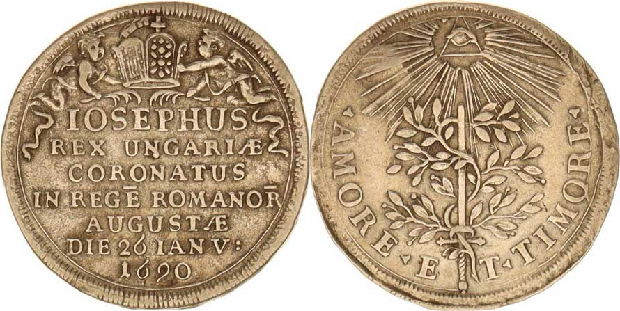 Josef I. (1705-1711), Větší korunovační žeton na římského krále 26.1.1690 v Augsburku