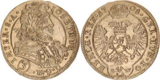 Josef I. (1705-1711), 3 kr. 1708 BW, K.Hora-Wohnsiedler var. opis: IMPER.S.A.