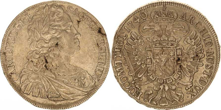 Karel VI. (1711-1740), Tolar 1740 b.zn., Praha-Scharff jako MKČ 1811, opis: S:A:GE:HI: