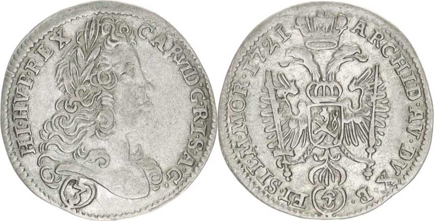 Karel VI. (1711-1740), 3 kr. 1722 FS, Praha-Scharff MKČ 1836