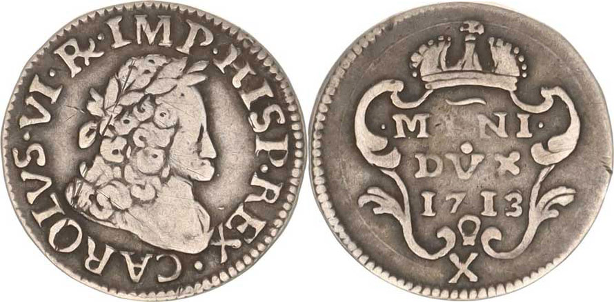 X Soldi (1/2 Lira) 1713, Lombardsko Milán "R" Novot. 45 , rys.
