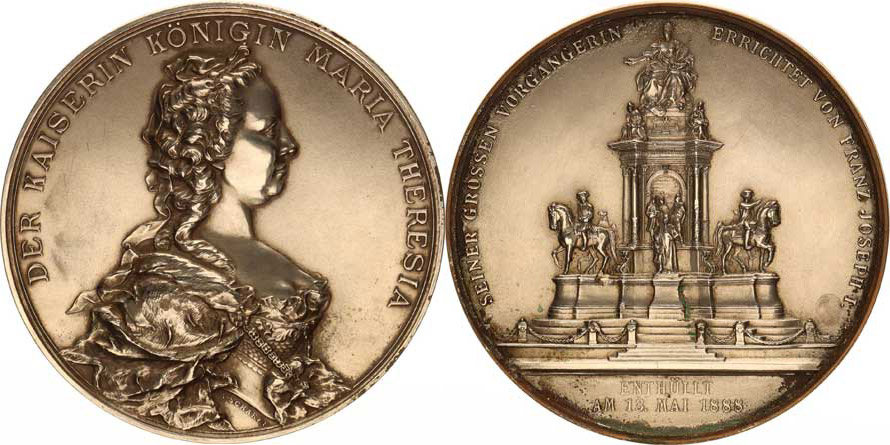 Marie Terezie (1740-1780), Medaile na odhalení pomníku ve Vídni 1888, postava do pasu /