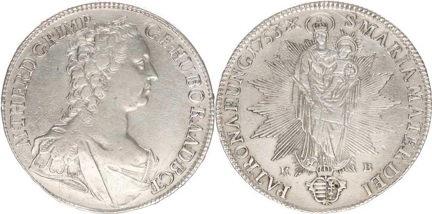 Marie Terezie (1740-1780), Tolar 1753 K-B, Kremnica "R" Husz. 1675 27,864 g