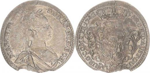 Marie Terezie (1740-1780), VI kr. 1743 b.zn., Praha-Scharff "RRR" jako MKČ 1965, tečka
