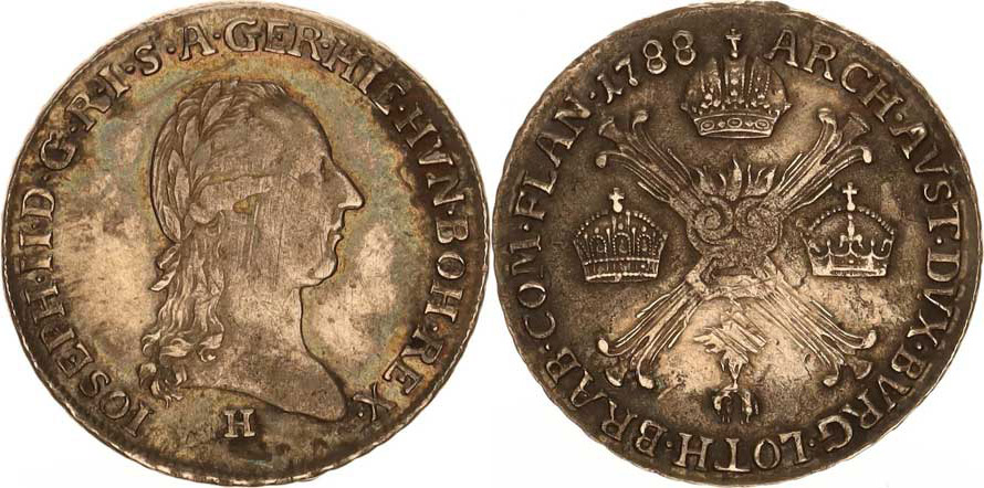 Josef II. (1780-1790), 1/4 Tolar křížový 1788 H 7,299 g, mír. just., tém.