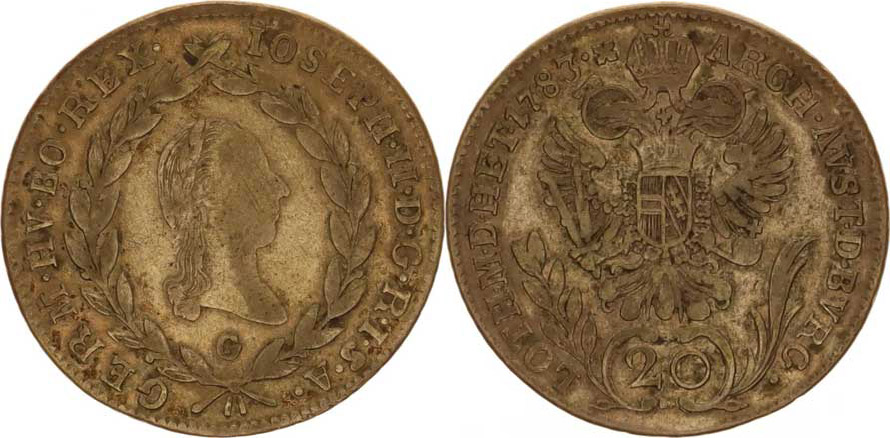 Josef II. (1780-1790), 20 kr. 1783 G "RR" Nov. 34a (T.C.)