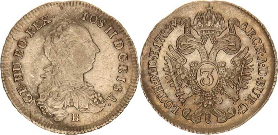 Josef II. (1780-1790), 3 kr. 1782 B "R"