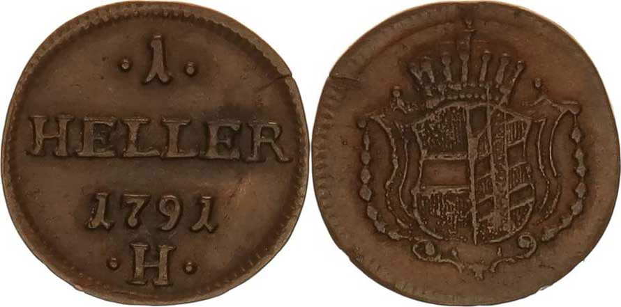 Leopold II. (1790-1792), 1 Heller 1791 H "R", nep. hr.