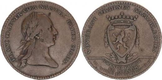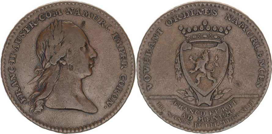 František I. (1792-1835), Žeton na holdování v Namuru v roce 1792 Cu 33 mm