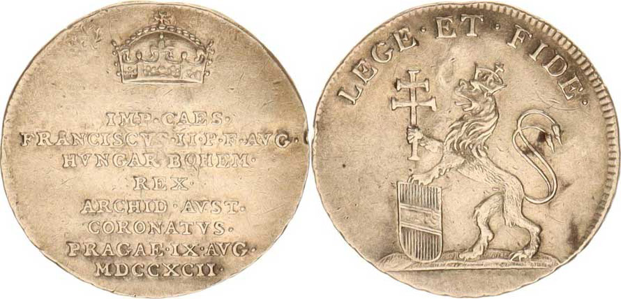 František I. (1792-1835), Malý žeton na českou korunovaci Praha 9.8.1792 Ag 20 mm