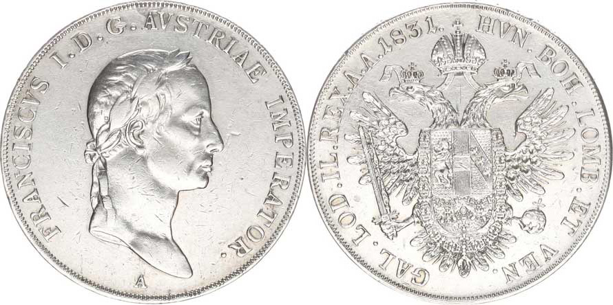 František I. (1792-1835), Tolar 1831 A - přilehlé stuhy "R", dr. rys. v av., tém.