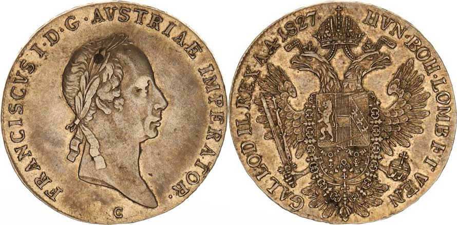František I. (1792-1835), 1/2 Tolar 1827 C "RR" 13,994 g, dr. just.