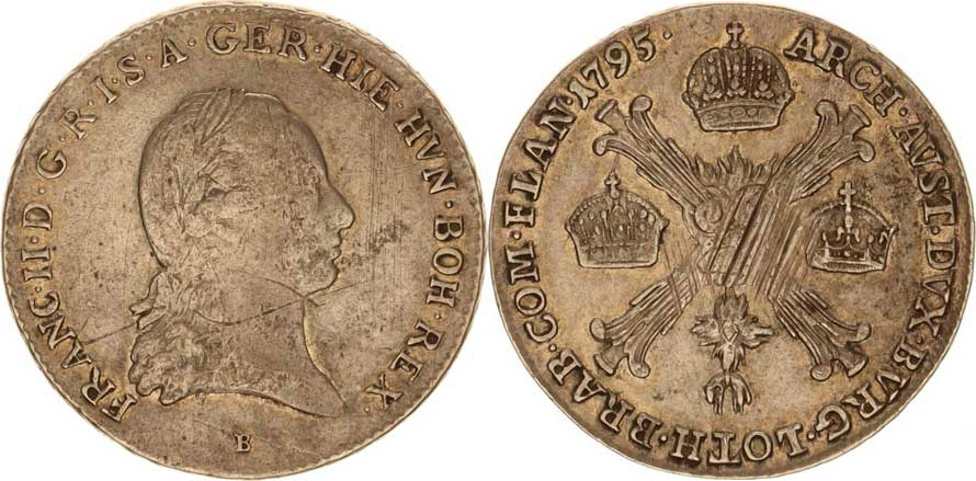 František I. (1792-1835), 1/4 Tolar křížový 1795 B - var. malá zn. mincovny, just. v rv.