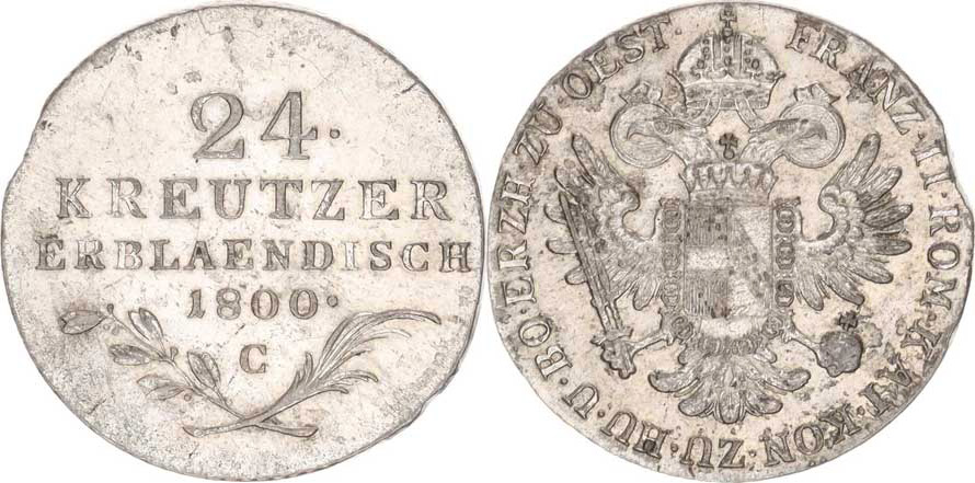 František I. (1792-1835), 24 kr. 1800 C "RR" , mír. kraj. stř., tém.
