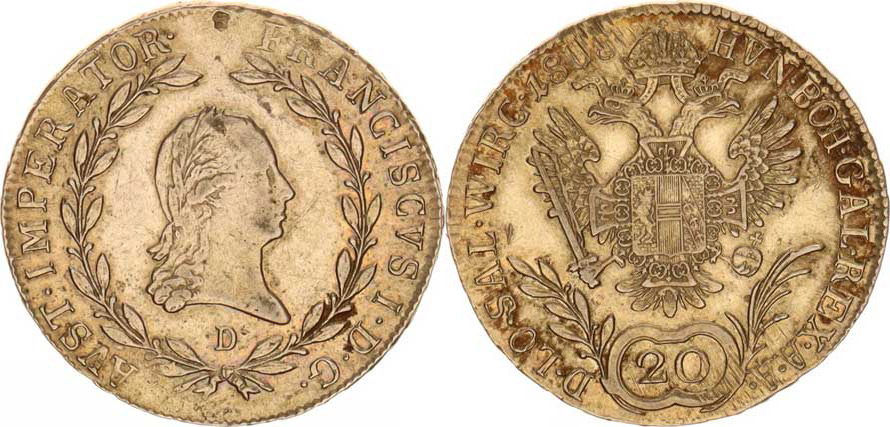 František I. (1792-1835), 20 kr. 1808 D, Salzburg "R", just. v dataci