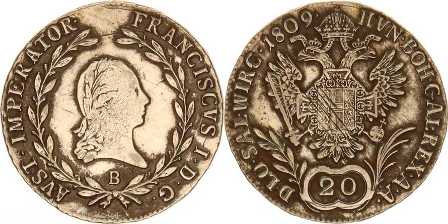 František I. (1792-1835), 20 kr. 1809 B, just., patina