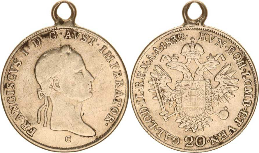 František I. (1792-1835), 20 kr. 1832 C, ouško, dr. rys.