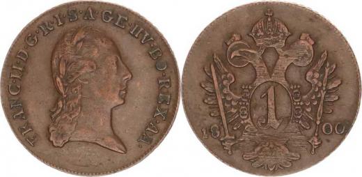 František I. (1792-1835), 1 kr. 1800 ? - nevyražená minc. zn. ! (chybotažba), just. v rv.