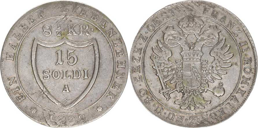 15 Soldi - 8 1/2 kr. 1802 A, mělčí ražba kraje