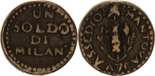 1 Soldo di Milano 1799, pro Mantovu "RRR" bronz 12,536 g KM 535; V-773; Her. 1212 +starý podložní štítek fy Herinek Ge rhard Wien